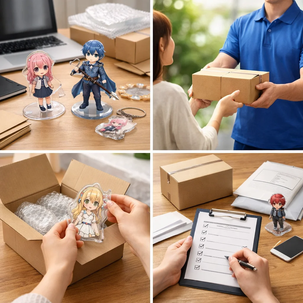 で詳述するため、ここでは「何が不安になりやすいか(破損・納期・送料・追跡)」を先回りで提示し、読むメリットを明確化してください。アクリル特有の注意(割れ・擦れ・保護フィルム)も軽く触れてください。