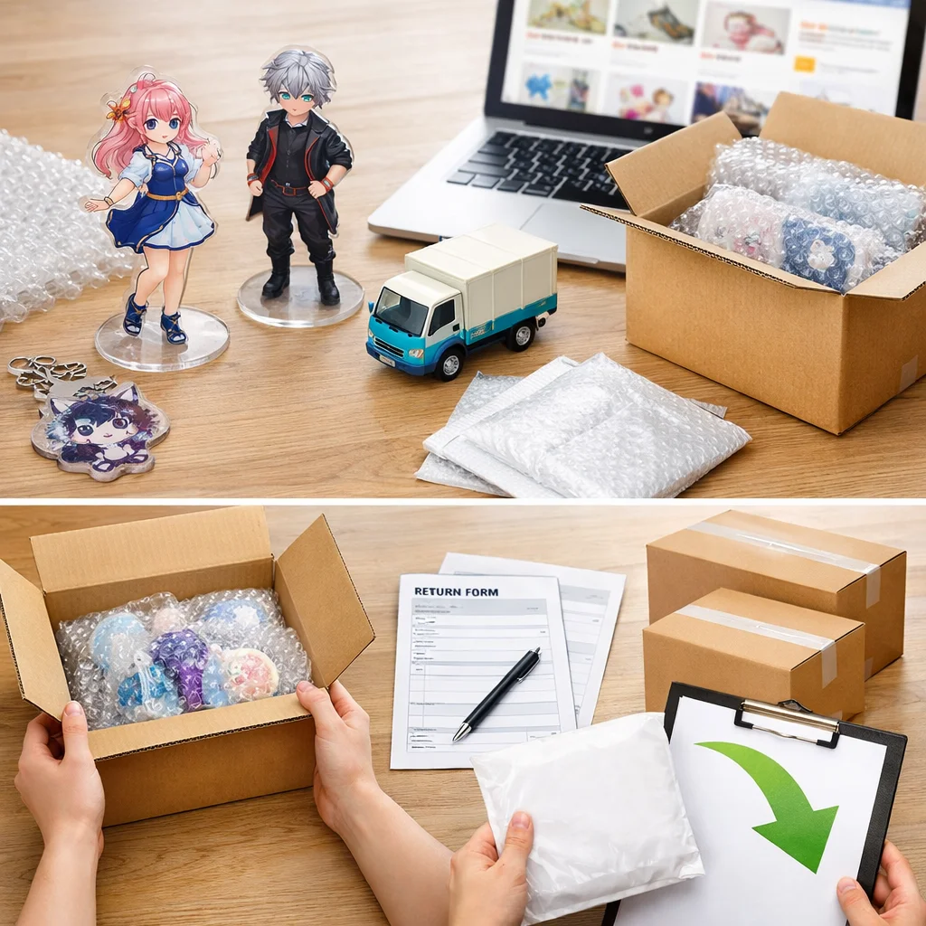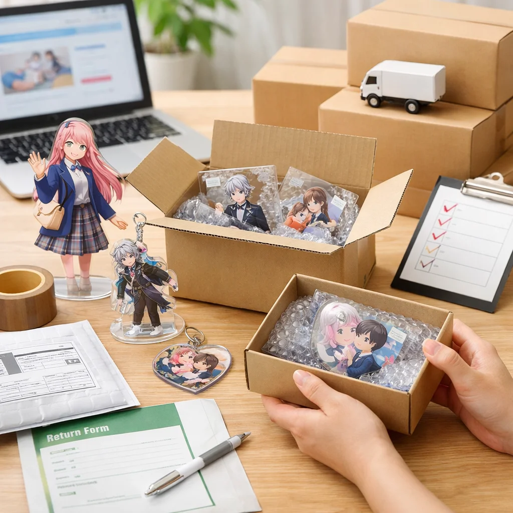 アクリルグッズの通販では、安全な配送方法の選定が非常に重要です。高額商品は補償付きの宅配便を選び、薄物はネコポスなど、商品の特性に応じた方法を考えましょう。また、初期確認や返品方法も事前に確認して、安心してショッピングを楽しんでください。