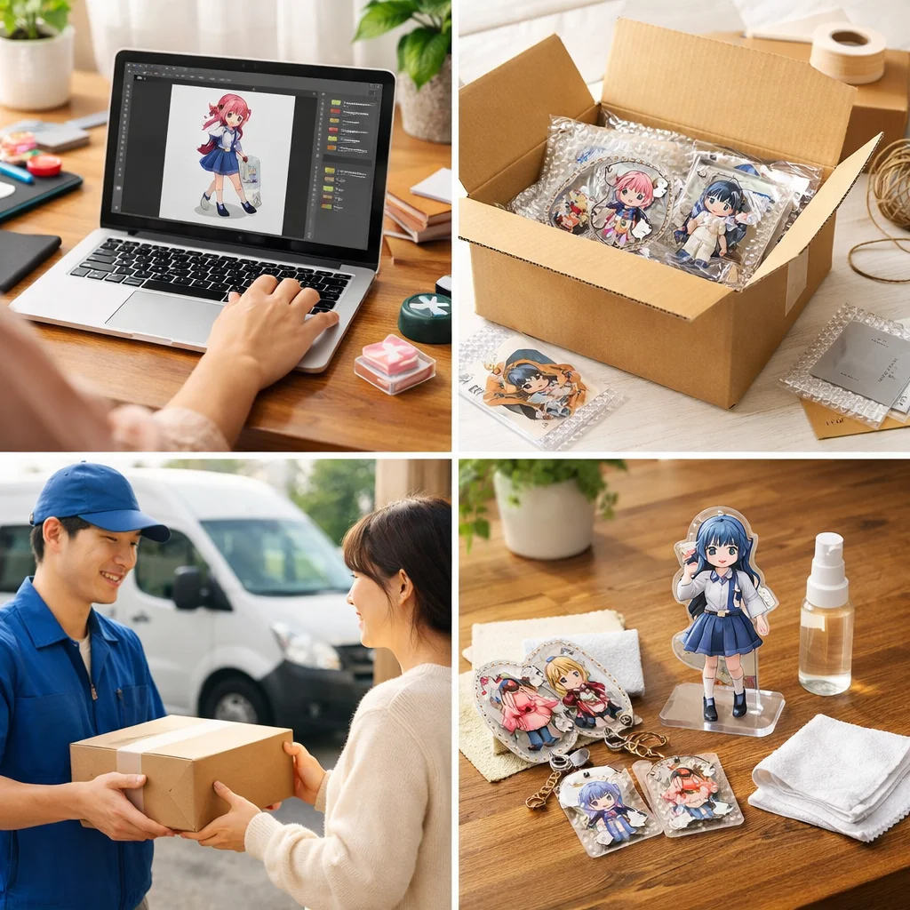 アクリルグッズは、その透明感と軽量性から人気があります。通販・配送・アフターサイトを利用することで、オンラインで手軽に購入でき、信頼できるサービスを選ぶことで配送時の破損や初期不良の不安を解消できます。これにより、安心してアクリルグッズを楽しむことができます。