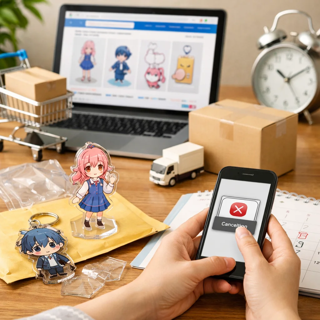 アクリルグッズの通販では、決済手数料や制作着手による制約、返品送料などが発生する場合があります。キャンセルの際は、各通販サイトのポリシーを確認し、損をしない判断が重要です。