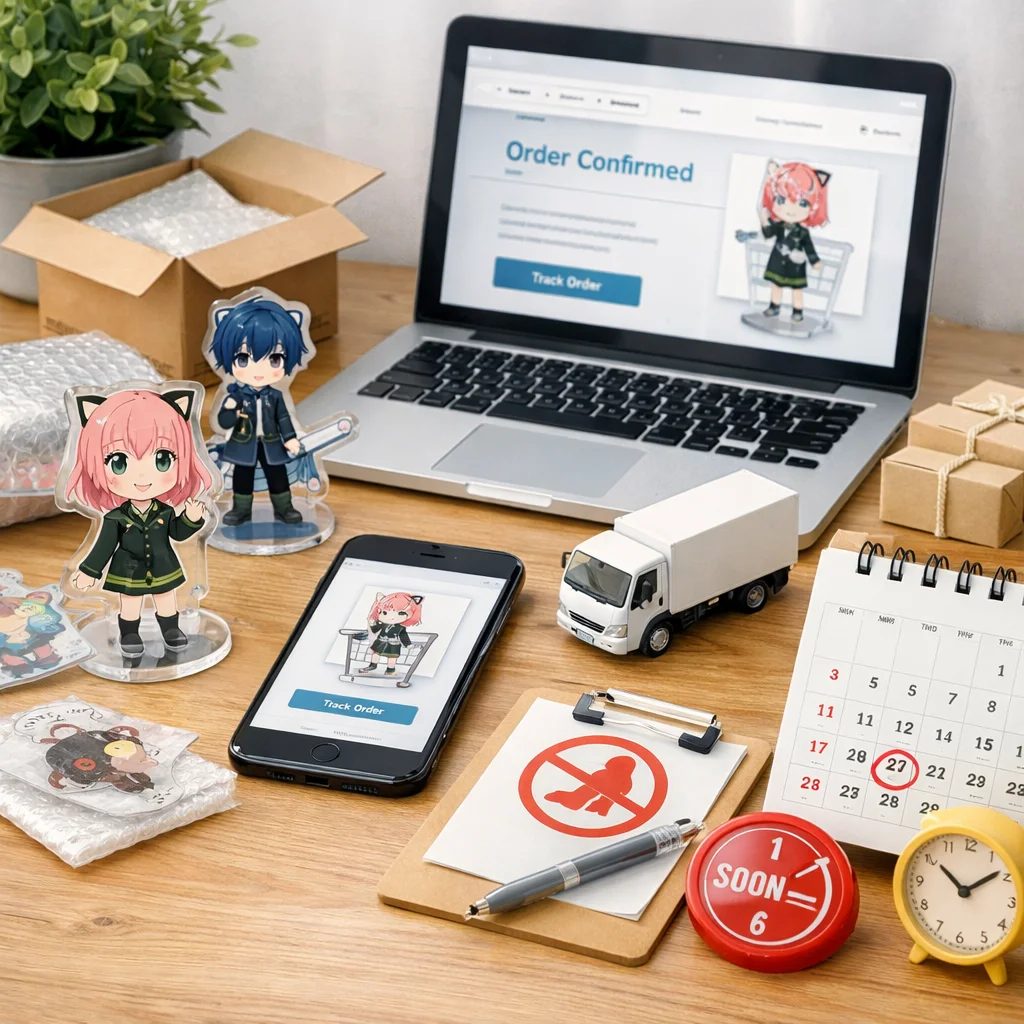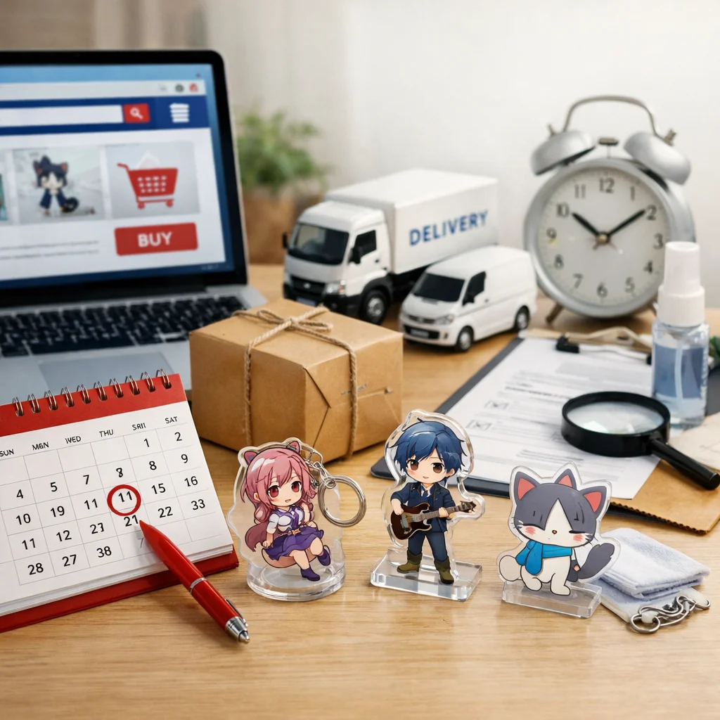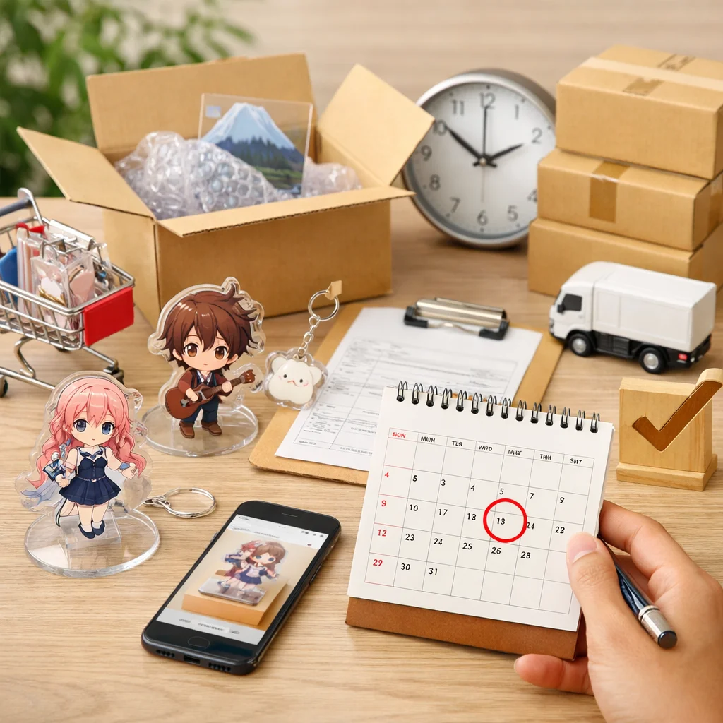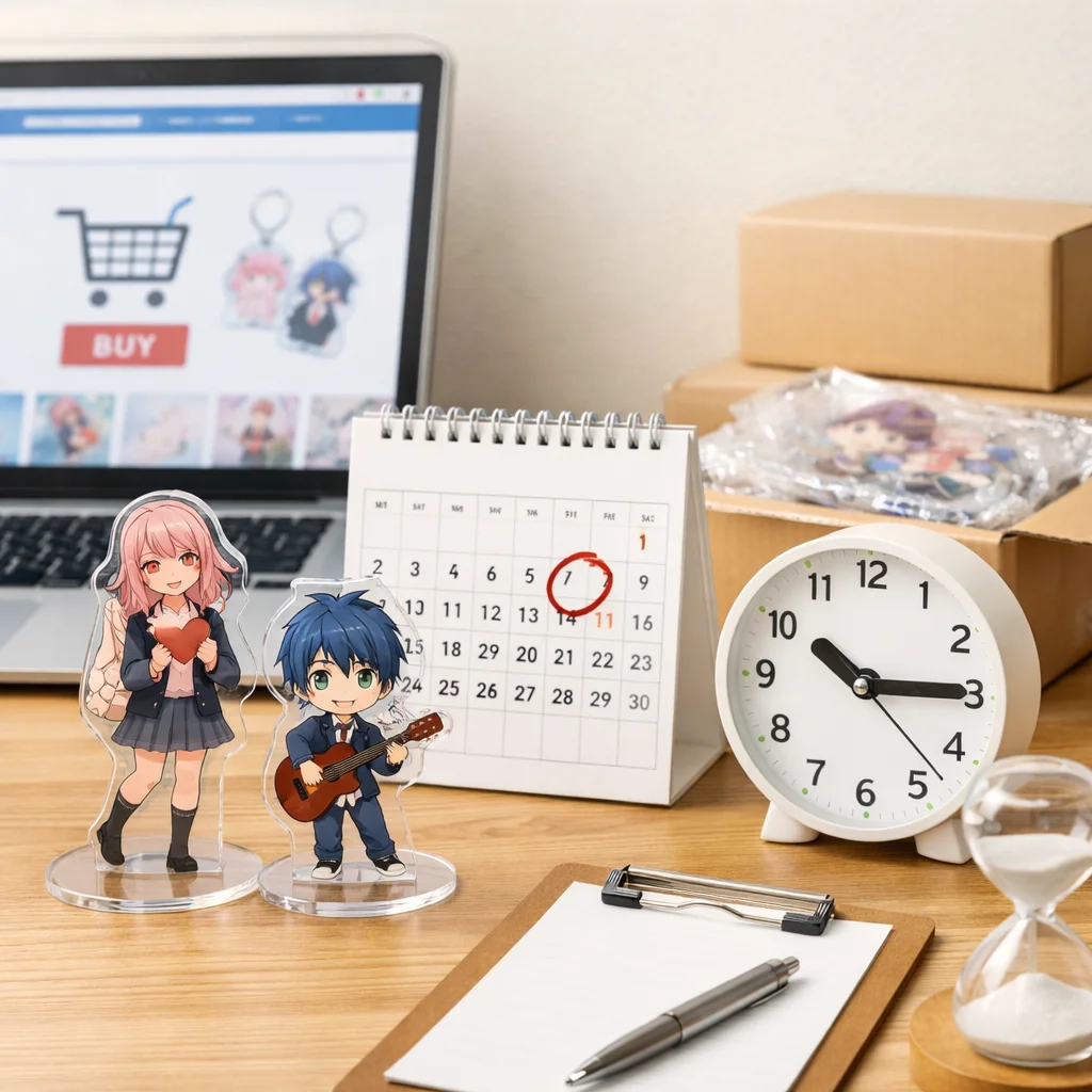 アクリルグッズを通販で購入する際、イベント誕生日納品希望日に間に合わせるためには、計画的な購入が不可欠です。制作期間、配送期間、そして予備日を考慮した逆算の考え方を取り入れることで、スムーズな受け取りが可能となります。