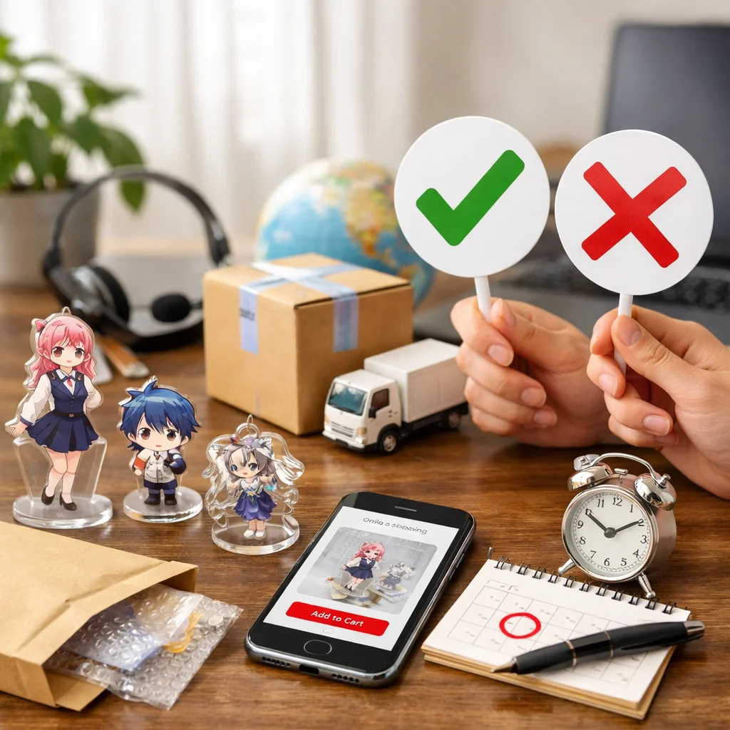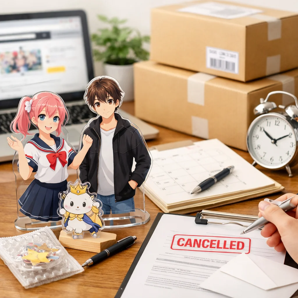 2. 制作着手のタイミング:アクリルグッズは多くが受注生産です。制作が既に始まっている場合、キャンセルできないことが一般的です。したがって、制作開始のタイミングを事前に確認する必要があります。